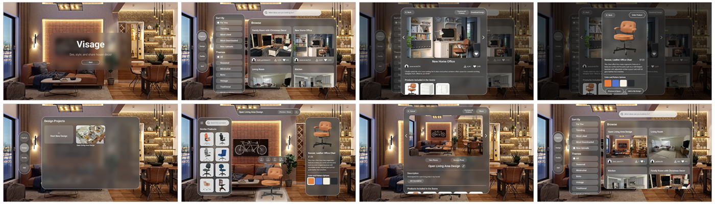 OverviewVisage is a conceptual mixed reality app that allows users to visualize, customize, and share home decor in their own spaces. It is driven by the ability to view and build on top of one another's home designs.