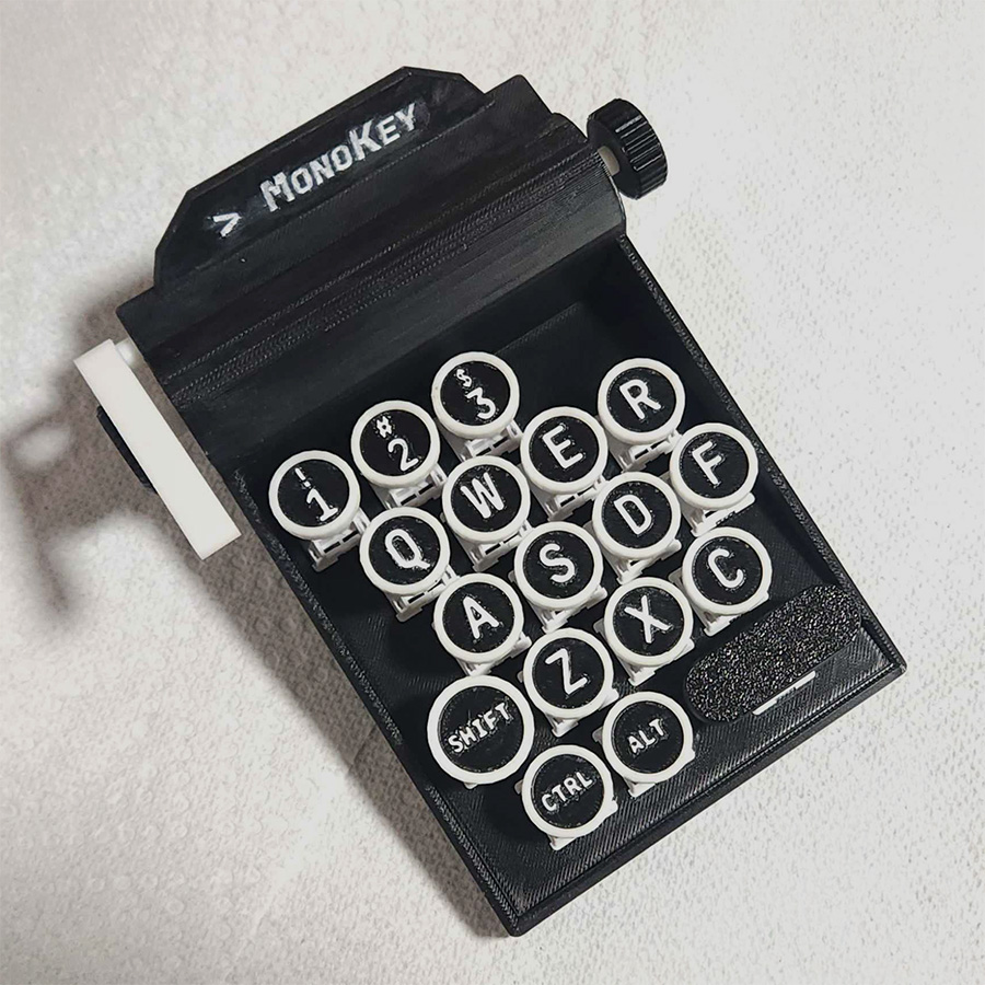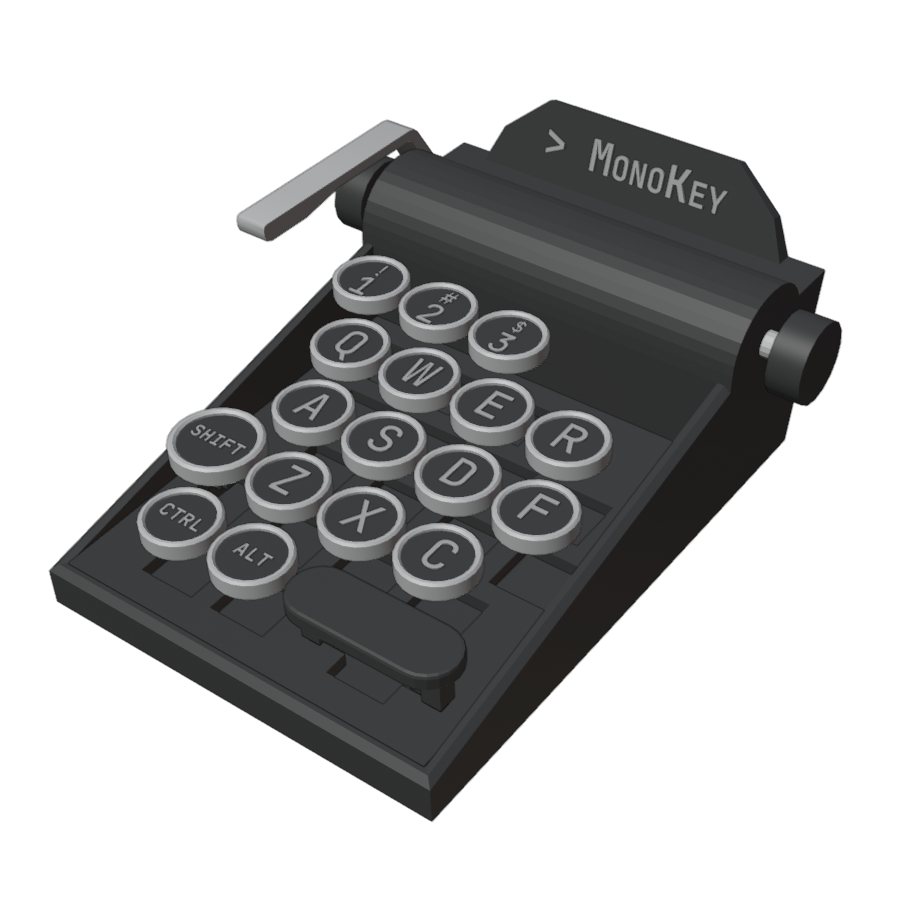 The artifact carried forward the blend of historical and modern themes. Naturally, the concept was to create a miniature typewriter that utilized modern key-switches to make a keyboard designed to look like a typewriter.