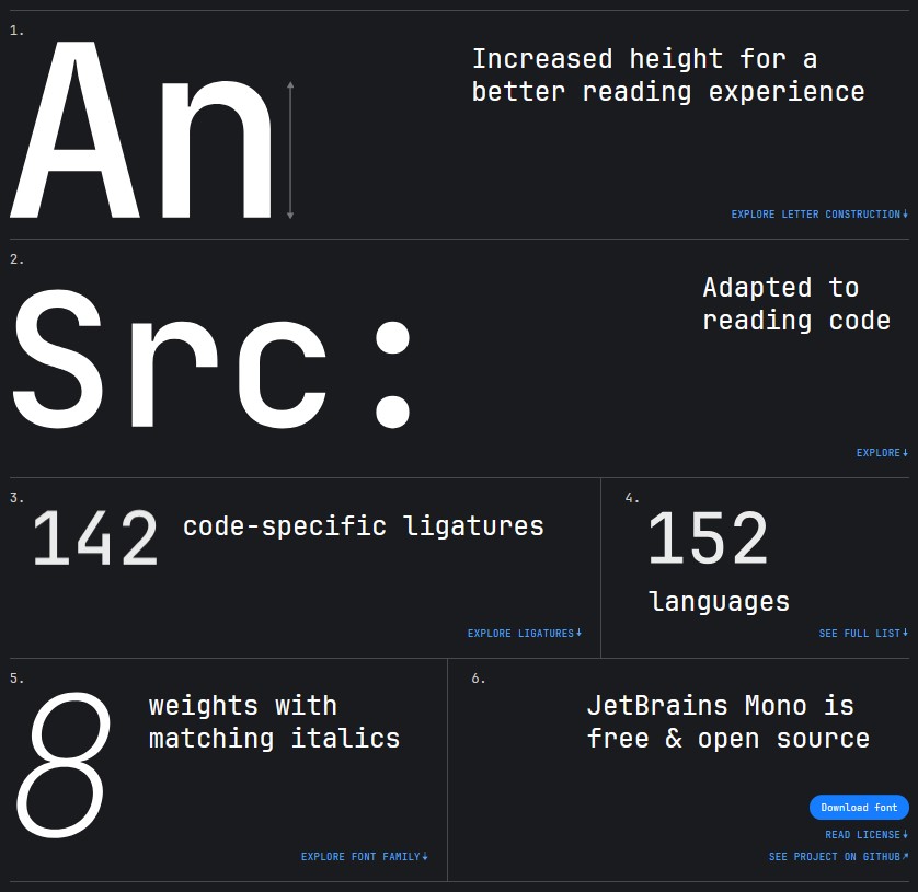 My research eventually brought me to JetBrains Mono, a typeface explicitly crafted for developers. JetBrains Mono solves unique challenges in coding environments, focusing on readability, clarity, and accessibility.