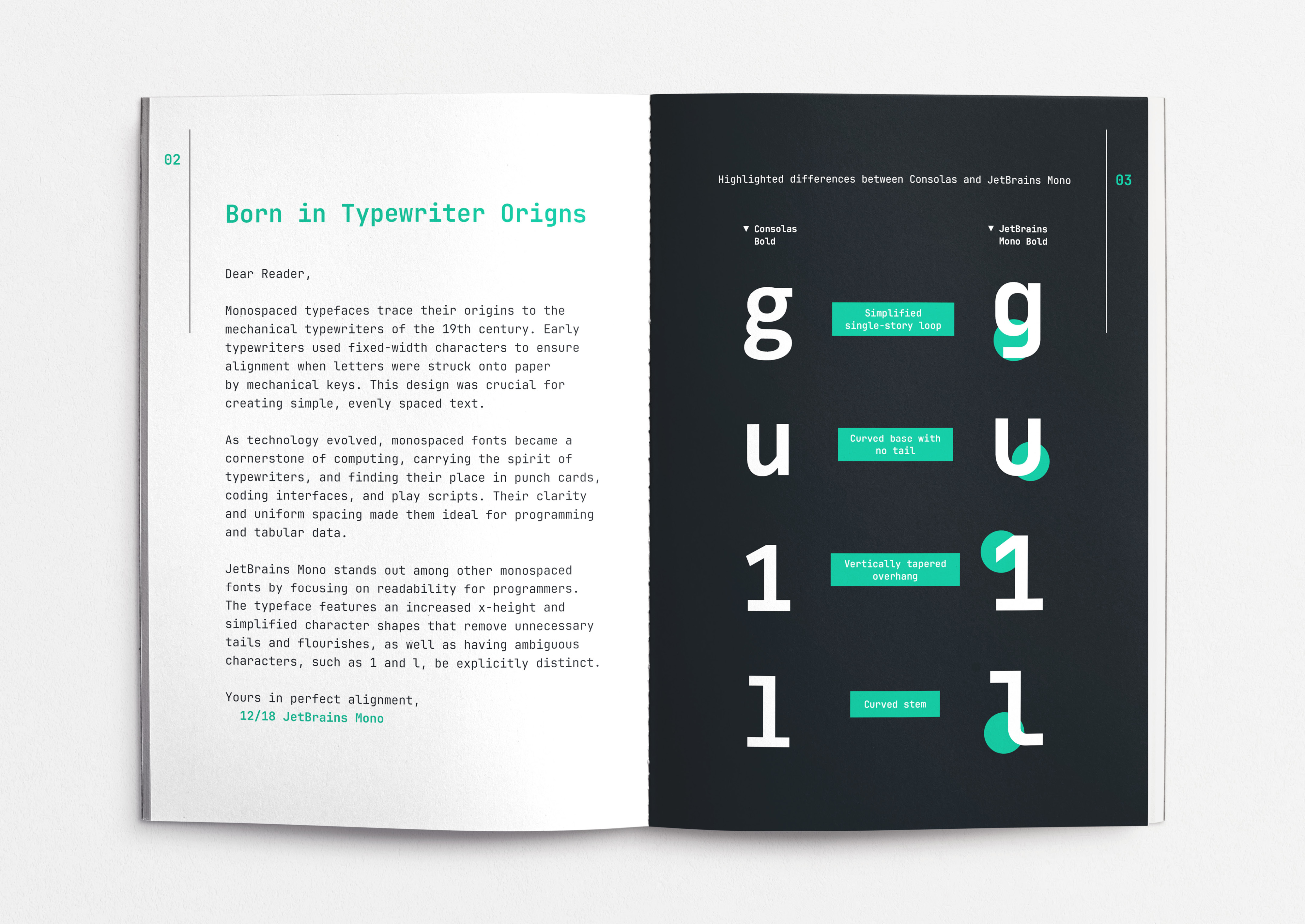 OverviewThis project is to create both a type specimen and miniature typewriter artifact that highlights JetBrains Mono's distinct design and functionality for developers.